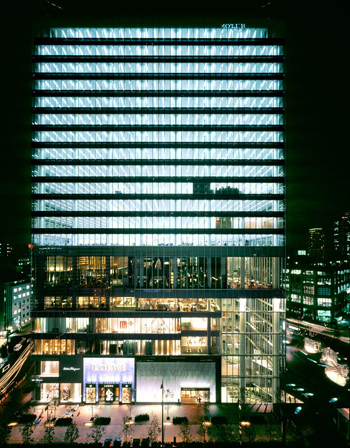 外殻を全面ガラスのカーテンウォールとし、都市との親和性を高めていることが特長。