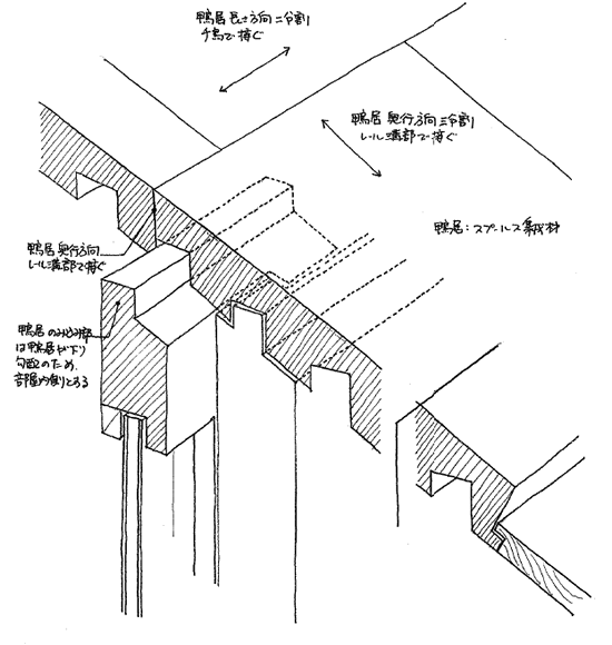 開口部スケッチ 木製サッシ上端部詳細スケッチ