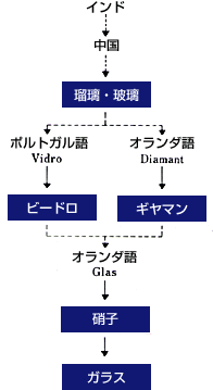 ポルトガル語のVidro、オランダ語のDiamantを語源とする
