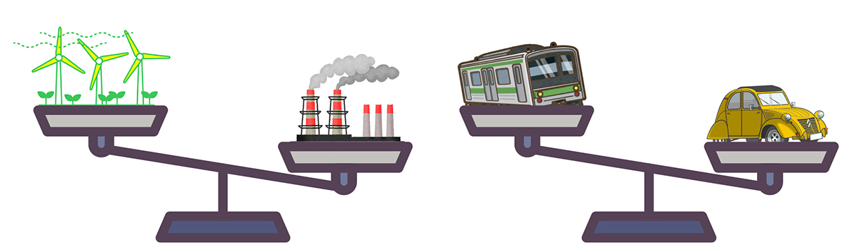 例えば動力源の比較をすると、日本は火力発電の割合が多くこのため国としてのGHG排出の半分近くが発電セクターから発生していますが、フランスは原子力、イギリスは風力による発電が主なため国のGHG排出構成の中で2割程度です。一方で、日本は鉄道網が発達しているため交通セクターからの排出は2割を切っているのと対照的に、アメリカやフランスは車社会でGHG排出の4割内外と非常に大きいです。