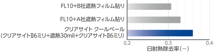 - *遮熱フィルムは、可視光線透過率が80%以上の製品で比較