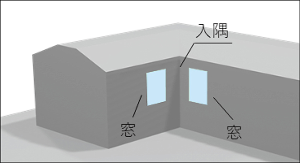 (*入隅:下図のように2つの壁が内向きに入りあってできる角の部分)