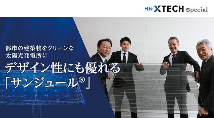 サンジュールは建材一体型の太陽光発電ガラス(BIPV)です。