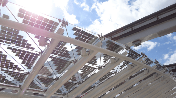 サンジュール スクエアの場合、セル種類は片面セルと両面セルの2種類から選択頂けます。カーテンウォールや、トップライトなど片側の面から太陽光を受光し発電する片面セル(一般的なセル)とフェンスや手すりなど両面から受光し発電する両面セルがあり、使用用途や発電性能・デザインから選べます。