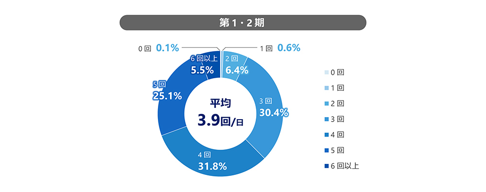 第一期、第二期全体での1日当たりの媒体への接触頻度は平均しておよそ3.9回/日でした。