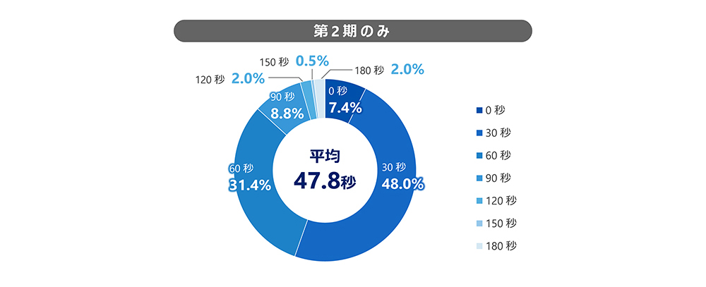 第二期では、1回当たりの媒体への接触時間は平均しておよそ47.8秒でした。先の項目と掛け合わせることで、就業者は1日あたり約186.4秒(3分6秒)媒体と接触していることが判明しました。