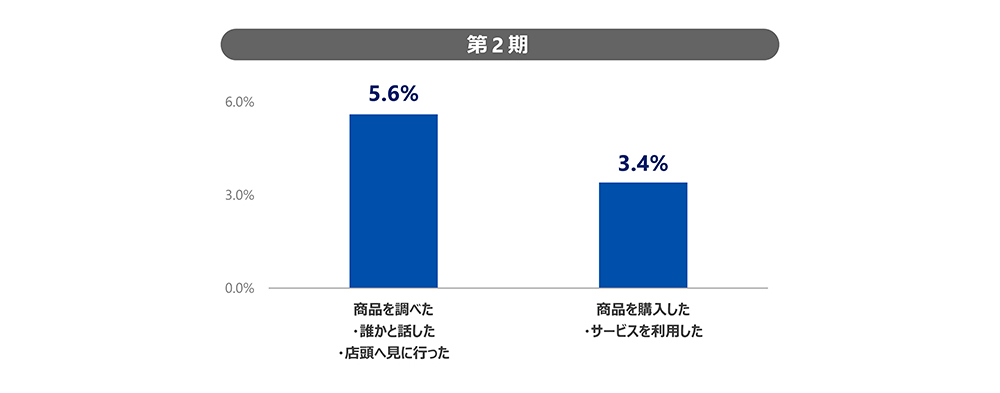 第二期では、広告接触後、累計約9%が「商品を調べる」、「店頭に見に行く」、「購入する」といった行動を起こす結果となりました。